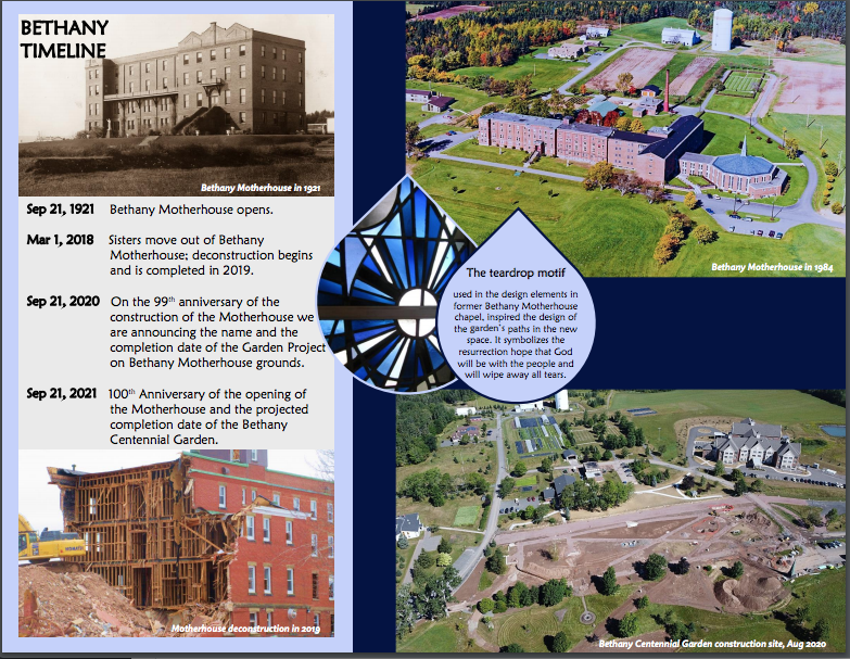 This date, September 21, marks the anniversary of the Congregation moving from their original Motherhouse on the Campus of St. Francis Xavier University to Bethany in 1921. “We Sisters of St. Martha believe Bethany Centennial Garden is a fitting name to commemorate this sacred place and significant date, as the planned official opening on September 21, 2021 will be 100 years, to the day, that we moved to this beautiful property which we still call home” said Sr. Brendalee Boisvert, Congregation Leader. “In the spirit of Gospel Hospitality, the dream for Bethany Centennial Garden came about from a desire to continue to share with the larger community of Antigonish Town and County, and beyond, this place of beauty which we are blessed to call home.”